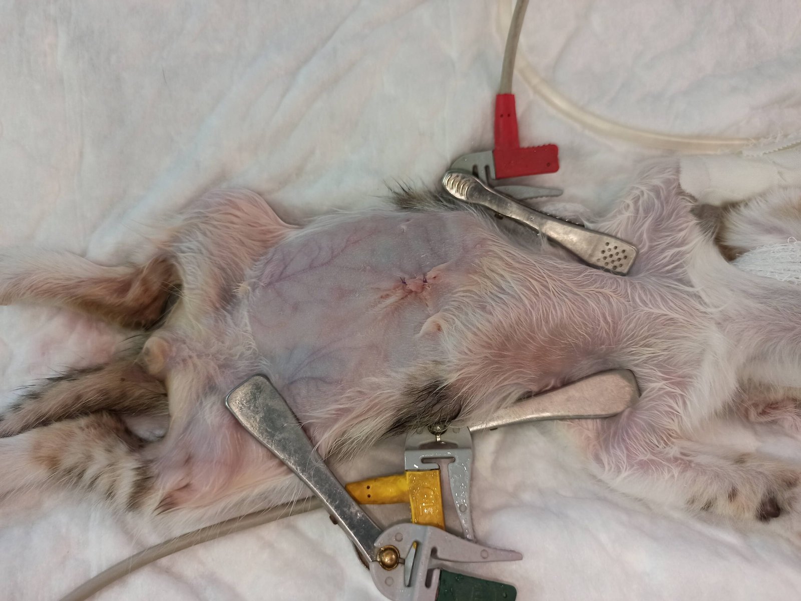 Se realizó una enterotomía, un procedimiento en el que se abre cuidadosamente el intestino delgado para retirar el cuerpo extraño sin comprometer la integridad del tejido. La cirugía transcurrió sin complicaciones y se llevó a cabo una sutura intestinal en varias capas para garantizar una correcta cicatrización y evitar fugas. Además, se implementó un protocolo de fluidoterapia y manejo del dolor para una recuperación óptima.