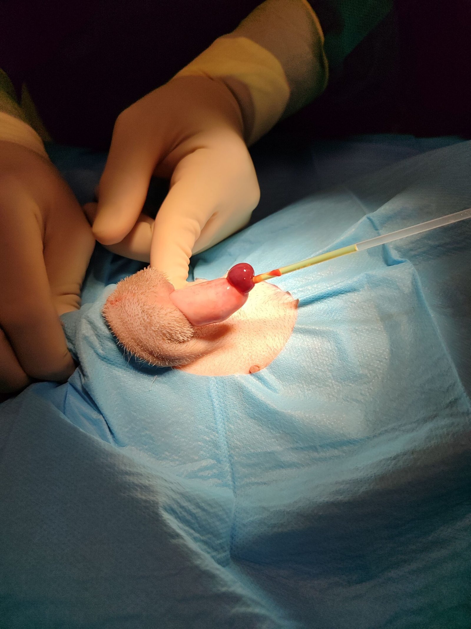 En esta ocasión, recibimos a un paciente que presentaba un prolapso uretral, una condición en la que la mucosa de la uretra sobresale a través del orificio externo, causando molestias, inflamación y posibles sangrados. Este problema puede originarse por diversas causas, como infecciones, irritaciones crónicas o incluso predisposición genética en algunas razas. Debido a la incomodidad y el riesgo de complicaciones, se decidió intervenir quirúrgicamente.